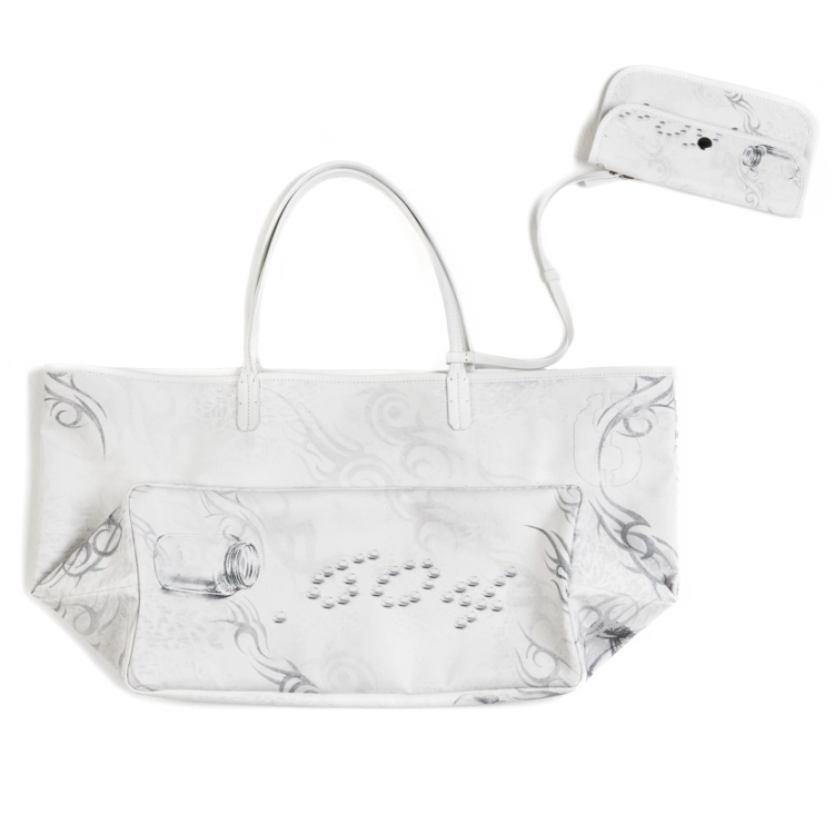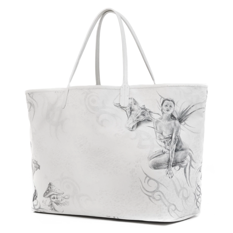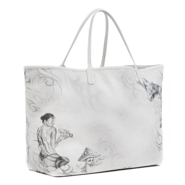 604SERVICE에서 직접 연필로 그린 그래픽들로 꾸며진 모든 계절에 어울리는 실용도 높은 쇼퍼백.