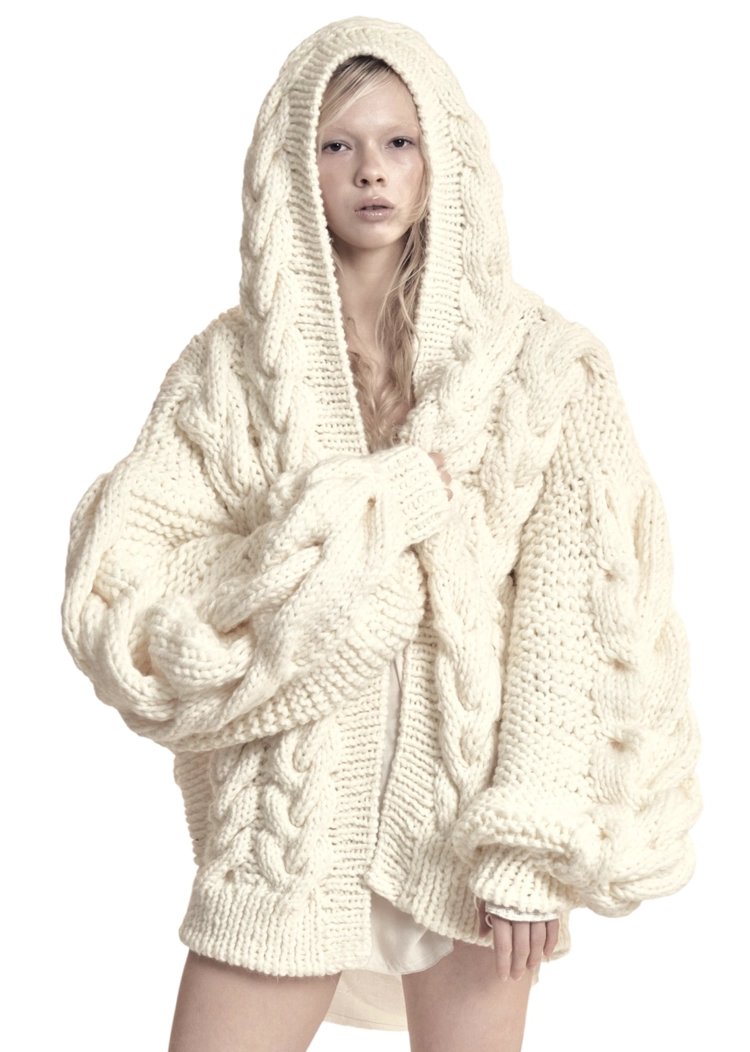 [ ONLY 4 LEFT ] BULKY HAND-KNITTED HOODIE SWEATER IN CREAM