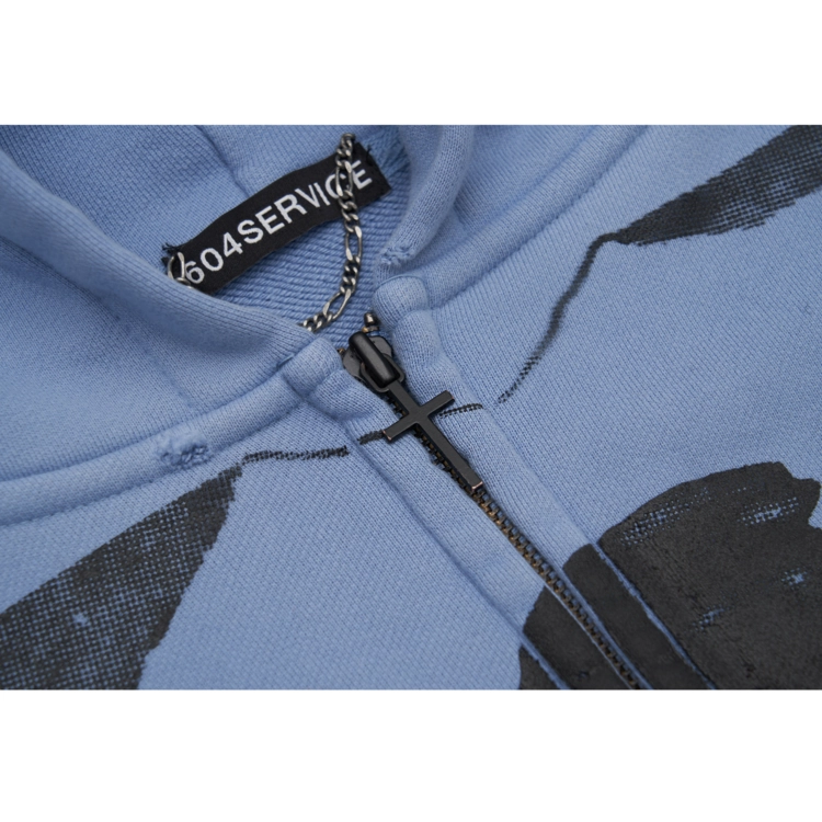 CROSS CHARM HOODIE ZIP-UP IN SEAFOAM BLUE