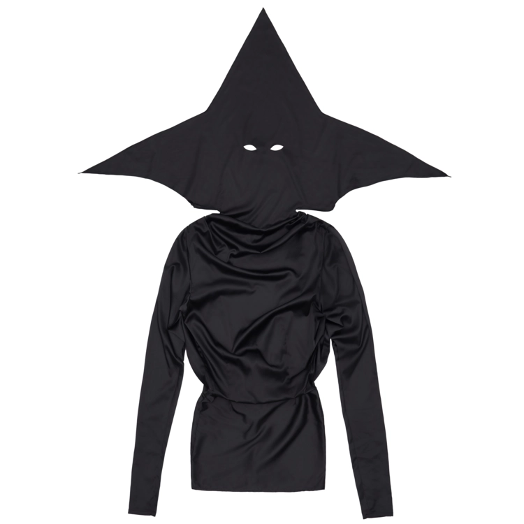 두건 마스크가 합쳐진 백리스 드레스.